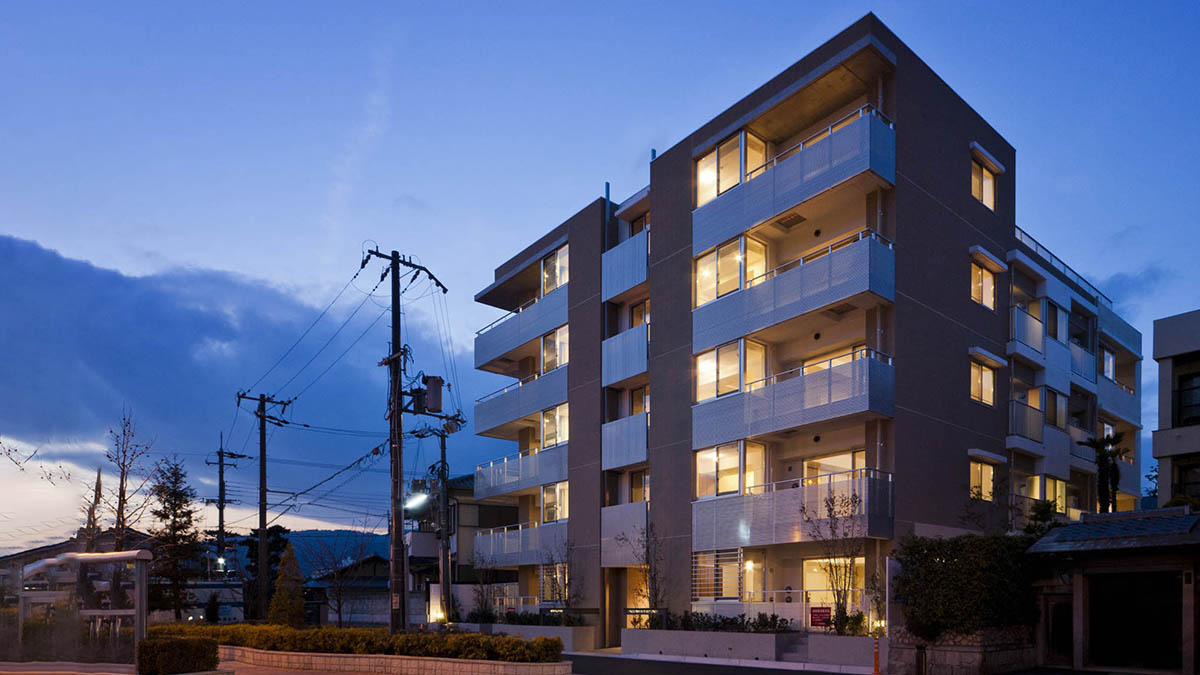 夙川のほとりに佇む、六甲山系と大阪湾を結ぶ自然の流れに寄り添う集合住宅。
