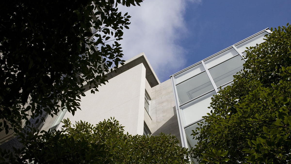 主張しすぎることなく、都市の中にさりげなく息づく建築です。