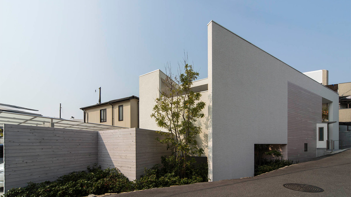 プライバシーを守りつつ、高低差と光を住まいに取り込み、敷地の個性が暮らしに奥行きと豊かさを添える住宅です。